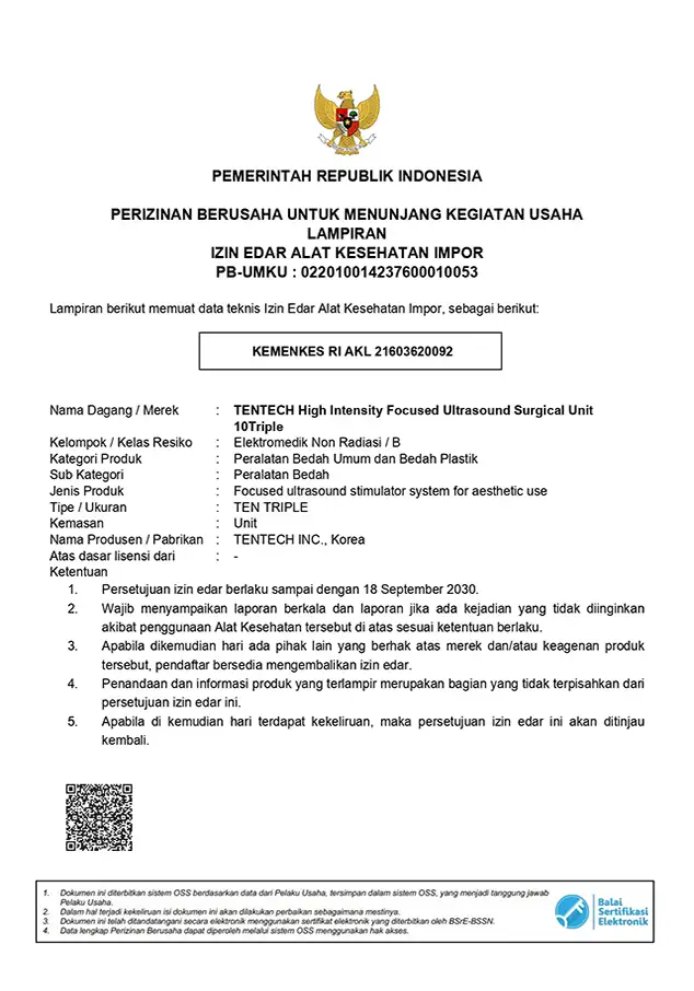 Получен сертификат Министерства здравоохранения (Индонезия) для 10THERA