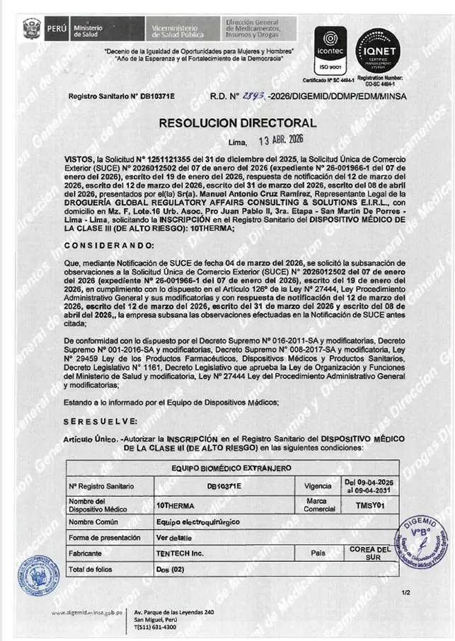 10THERMA и 10THERA получили сертификацию ANVISA (Бразилия)