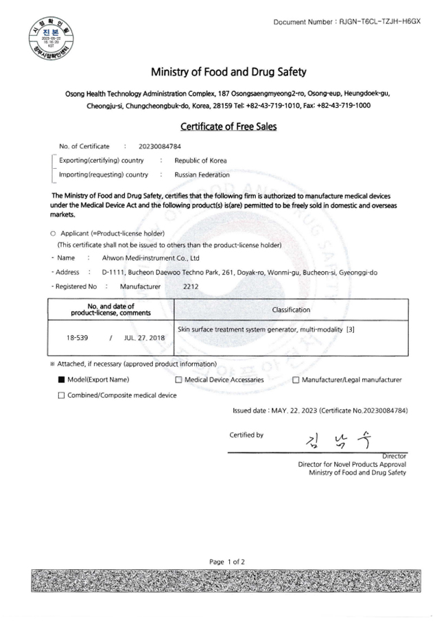 Получено сертификацию MFDS для Dr. Oracle LED Mask