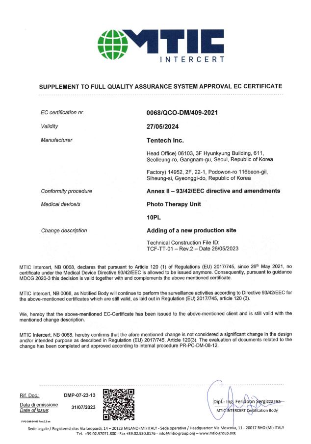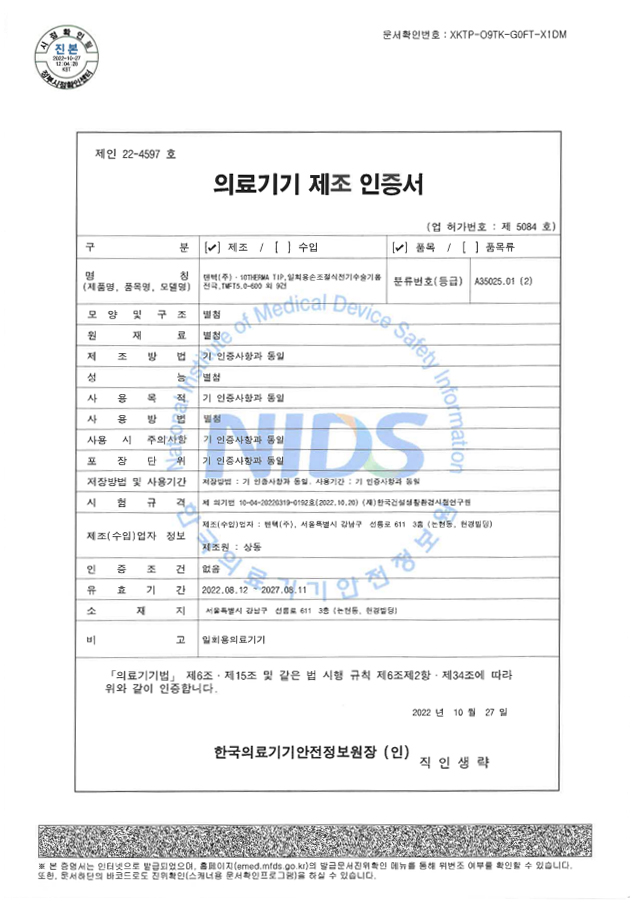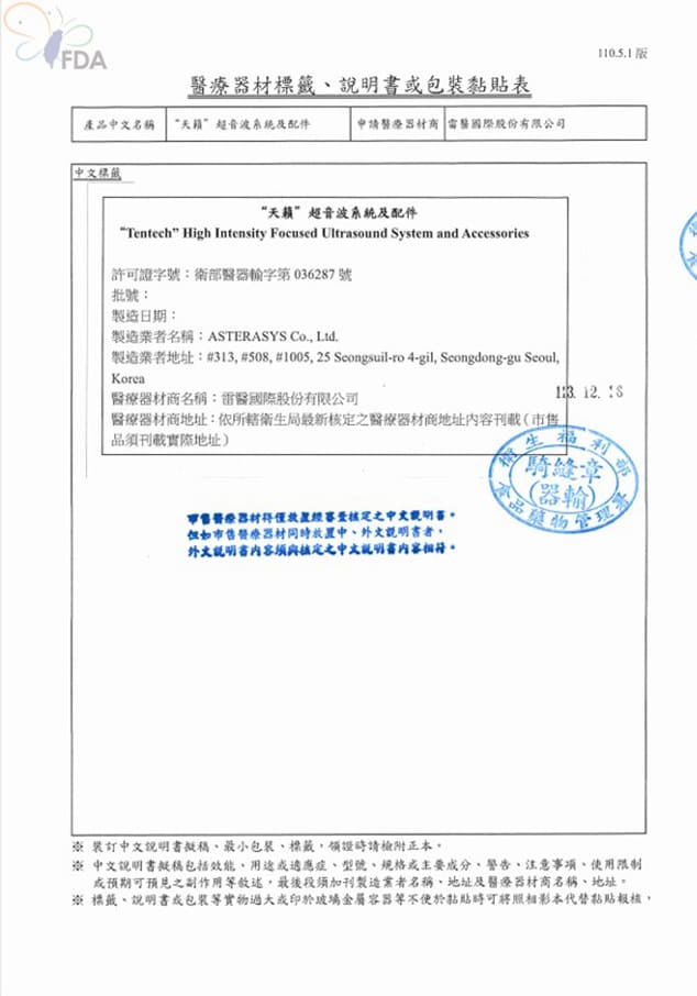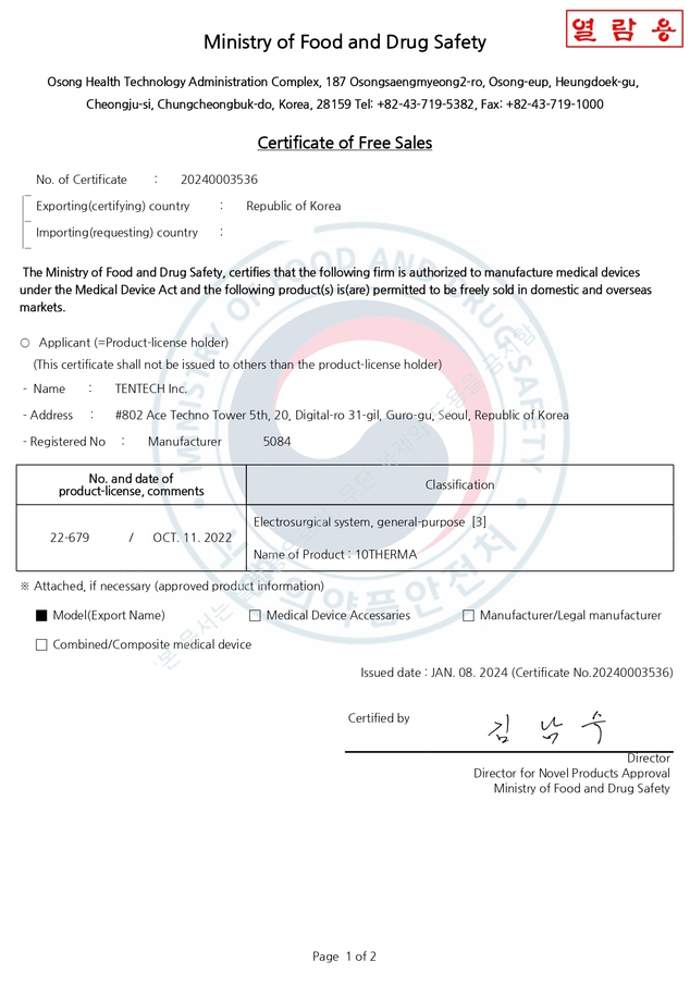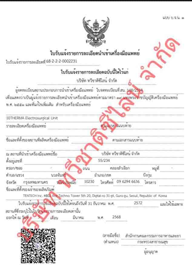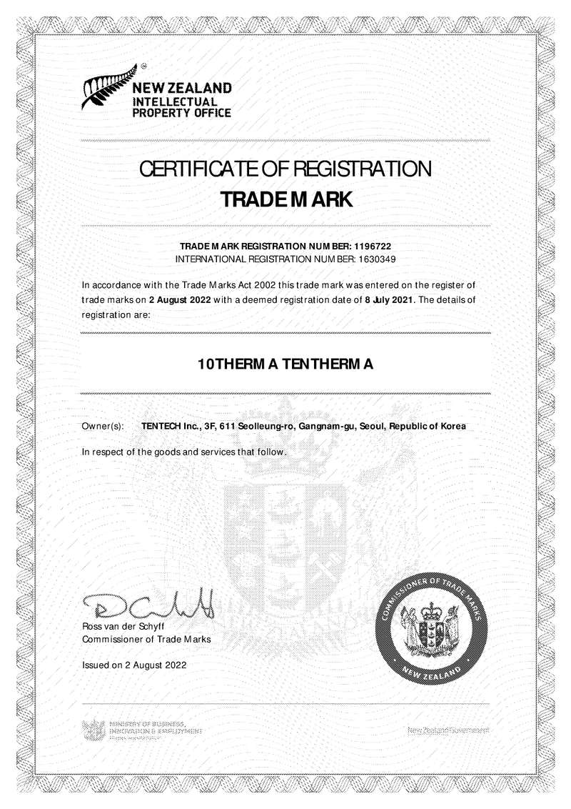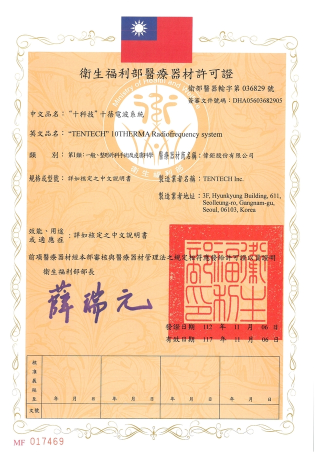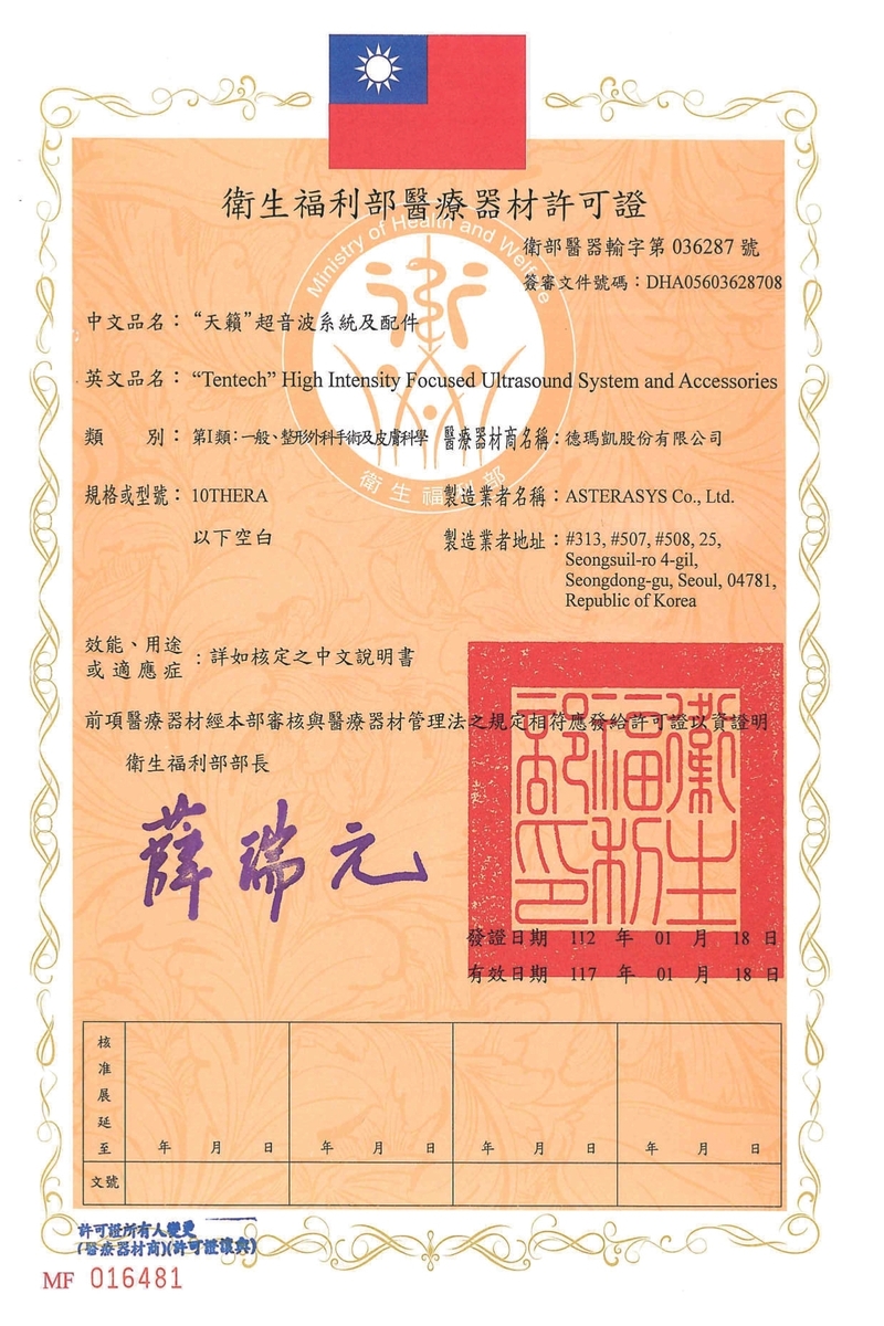 Получен сертификат TFDA (Тайвань) для 10THERMA