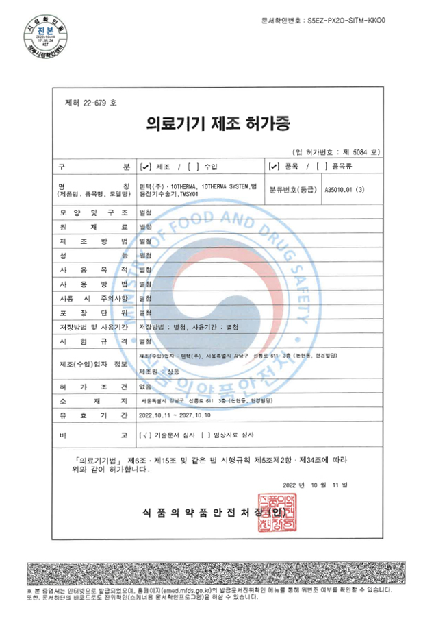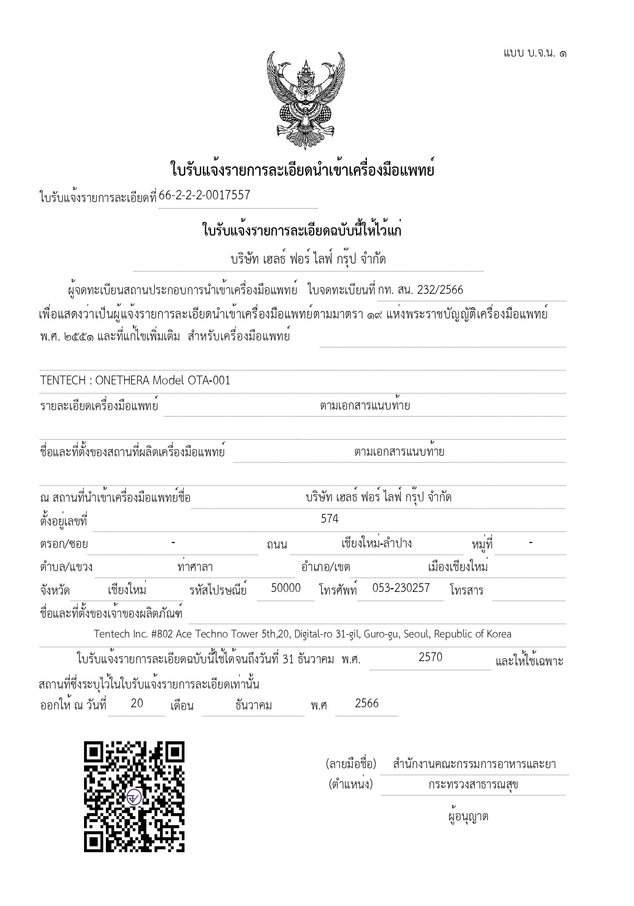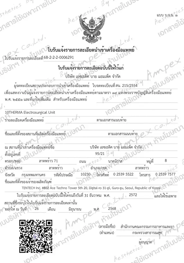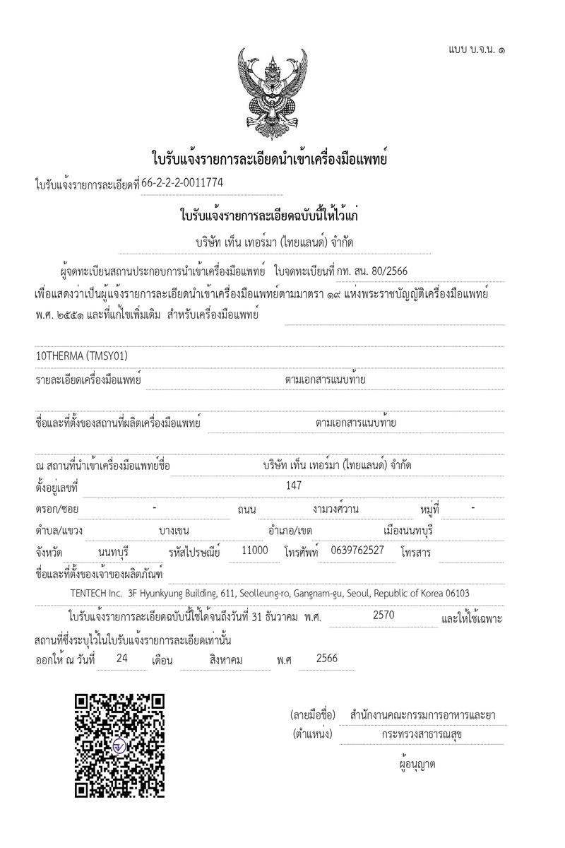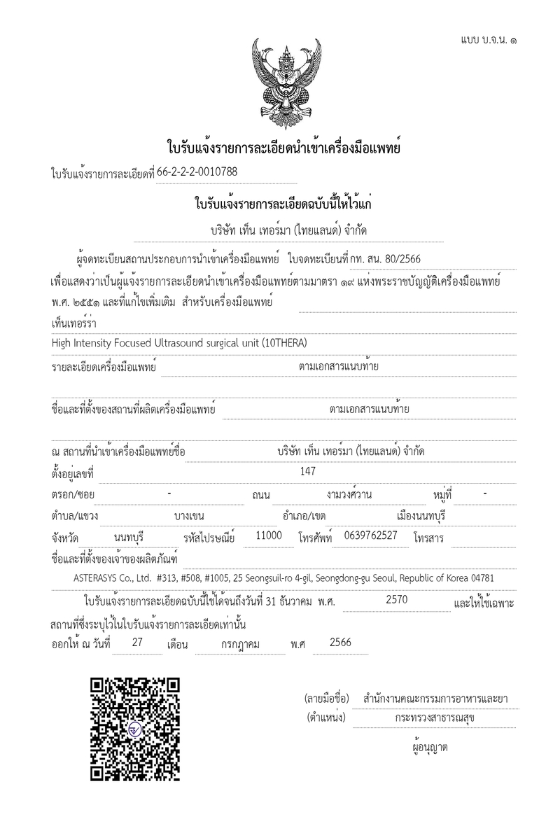 Получен сертификат FDA (Таиланд) для 10THERMA и 10THERA