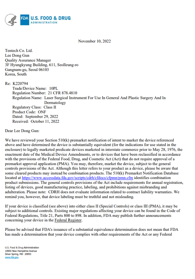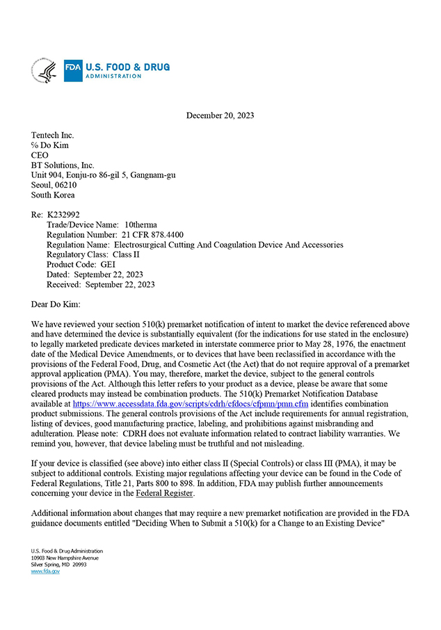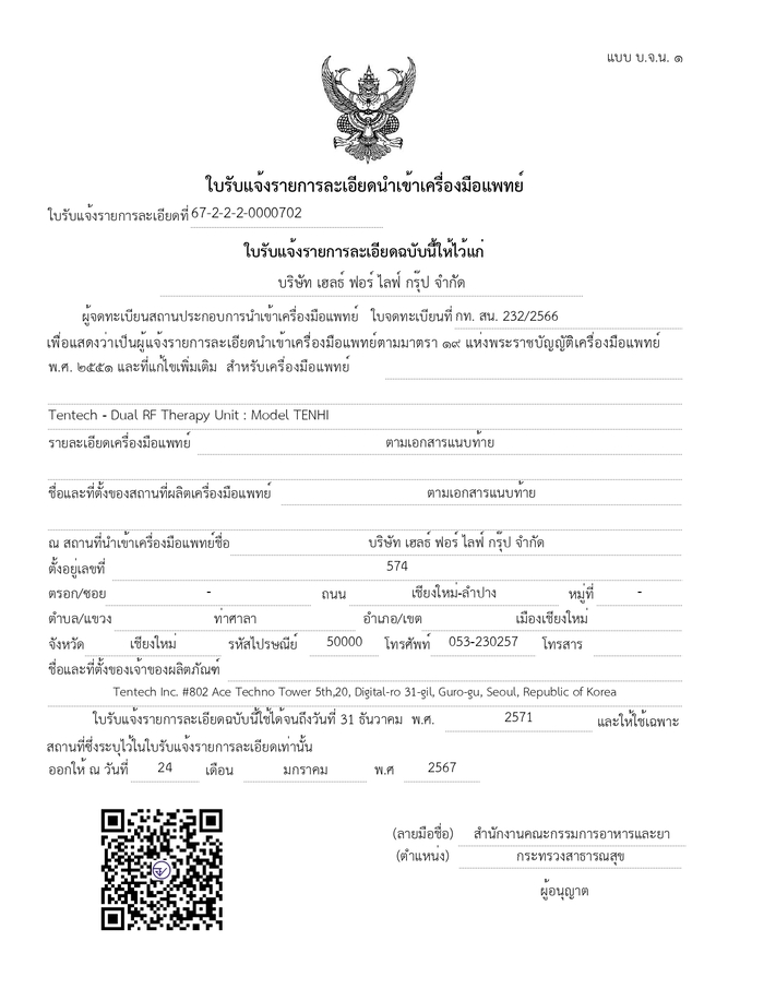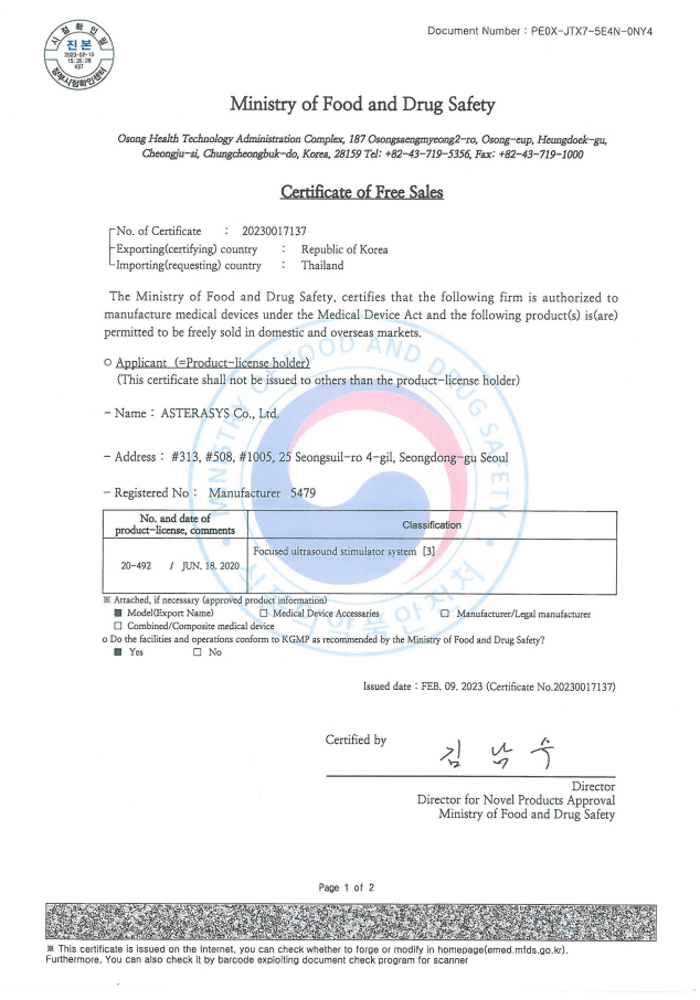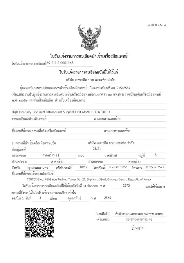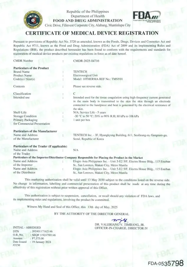 Получен сертификат FDA (Таиланд) для 10THERMA и 10THERA