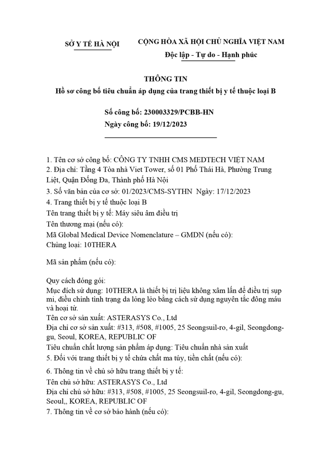 Получен сертификат Министерства здравоохранения (Вьетнам) для 10THERA