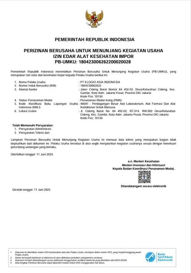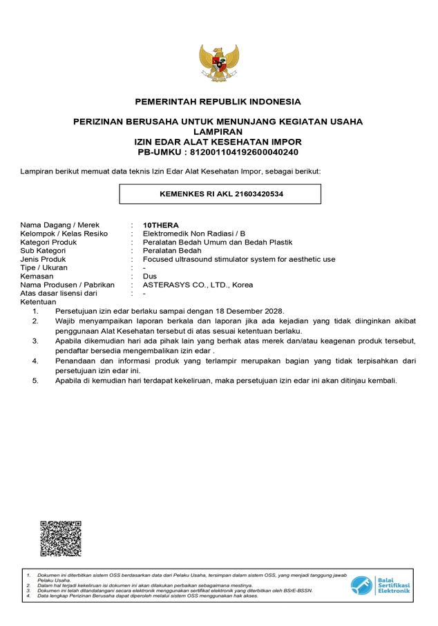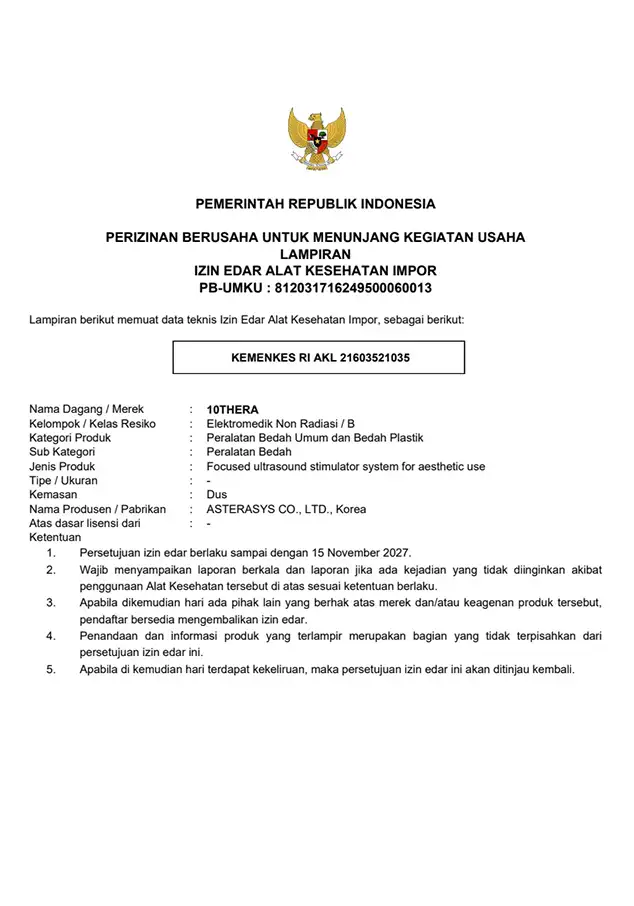 Получен сертификат Министерства здравоохранения (Индонезия) для 10THERA