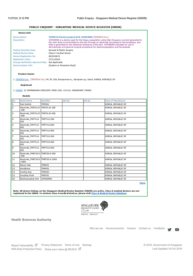 Получен сертификат SMDR (Сингапур) для 10THERMA