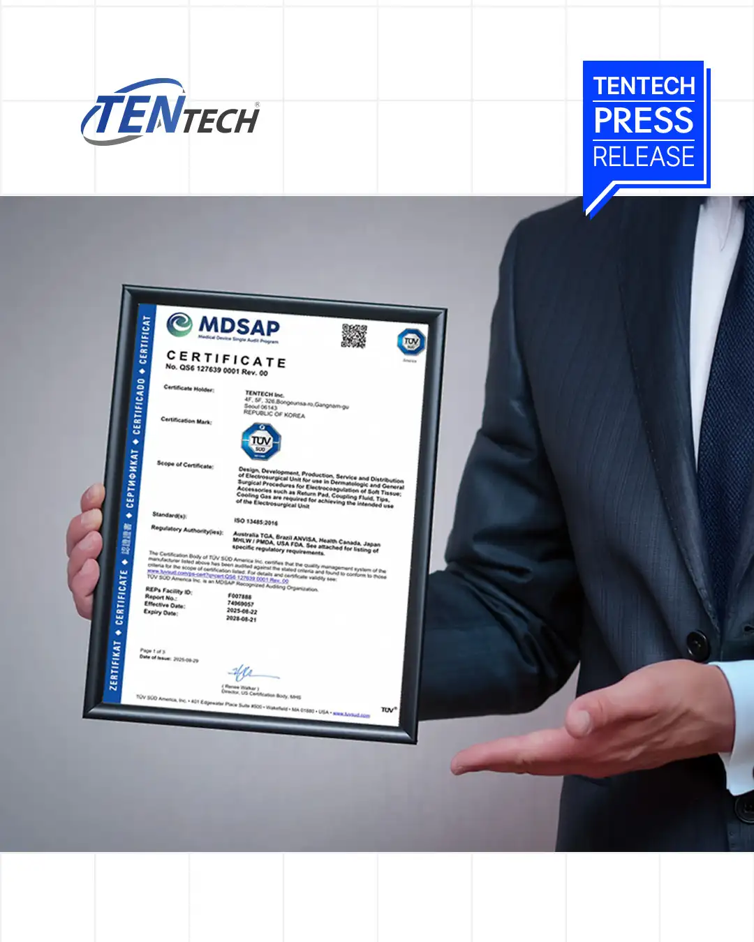 TENTECH (CEO Han Dong-ok), глобальная компания по эстетическим медицинским устройствам, недавно получила сертификацию для программы единого аудита медицинских устройств (MDSAP), которая ускорит ее расширение мирового рынка. MDSAP — система, объединяющая аудиты качества медицинских устройств среди пяти стран-участниц Международного форума регуляторов медицинских устройств (IMDRF): США, Бразилия, Япония, Канада и Австралия. Получение сертификации позволяет производителям частично или полностью освободить от аудита GMP в каждой стране. Это достижение позволяет TENTECH упростить процедуры аудита с каждой страной, сокращая время и затраты и тем самым повышая конкурентоспособность на мировых рынках. Тем более, "10THERMA" получила положительную обратную связь от медицинских специалистов и пациентов за предоставление высокой энергии для максимального эффекта лечения при снижении боли и побочных эффектов. Устройство следующего поколения HIFU "10TRIPLE" оснащено 3-линейной системой одновременного облучения для максимизации эффекта после обработки. Он разработан с семью различными типами картриджей, что позволяет быстрое лечение больших площадей и точное лечение деликатных областей. Патроны 3-линейного и пера-типа обеспечивают энергию подкожного и SMAS слоев без повреждения поверхности кожи, способствуя регенерации коллагена и эластинового волокна для обеспечения значительного подъема эффекта. Хань Донг-ок, генеральный директор TENTECH, заявил: «Эта сертификация MDSAP доказывает, что TENTECH создала систему менеджмента качества мирового уровня и способность производить выдающиеся продукты. Мы продолжим наши усилия по выходу на новые рынки, укреплению глобального доверия и повышению нашей конкурентоспособности» Между тем, TENTECH планирует продать 300 единиц внутри страны к концу текущего года и 1000 единиц во всем мире к следующему году. Компания в настоящее время проводит регуляторные одобрения в Азии, Европе и на Ближнем Востоке, и уже заключила соглашения о дистрибуции с такими крупными странами, как Тайвань, Гонконг, Индонезия и Вьетнам. |