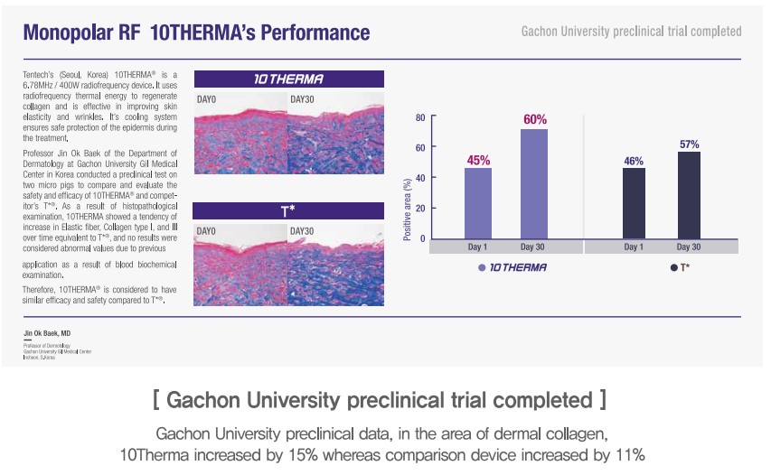 По данным Tentech Inc., 10THERMA была первоначально запущена в продажу в Южной Корее в октябре прошлого года. За первый год своего существования компания 10THERMA уже превысила отметку в 500 единиц. 10THERMA, монополярное радиочастотное устройство мощностью 400 Вт с размером наконечника 5 мм, имеет зону воздействия на 25% большe, чем у других монополярных устройств. Кроме того, 10THERMA может производить на 20% больше тепловой энергии. Представитель Tentech Inc. сказал: «В настоящее время люди гораздо больше заинтересованы в улучшении своей кожи, чем когда-либо прежде. На рынке нехирургической подтяжки кожи наш продукт 10THERMA быстро завоевывает долю рынка по всему миру». Получив одобрение TFDA, Tentech Inc. начала расширять свое влияние на мировом рынке. С 8 по 10 октября компания Tentech Inc примет участие в «49-м ежегодном собрании Тайваньской дерматологической ассоциации», которое пройдет в выставочном центре Гаосюна на Тайване. Это мероприятие является первой презентацией 10THERMA на Тайване. Профессор Пак (Ынсу) из Университета Сунчунхян собирается прочитать лекцию о 10THERMA на тему «Монополярная радиочастотная подтяжка кожи с использованием инновационной системы 10THERMA». Он добавил: «Чтобы попасть на Тайвань, мы хорошо подготовились. Мы уже нашли и подписали экспортный контракт на Тайвань с одним из ведущих дистрибьюторов Тайваня». И упомянул: «Мы рассчитываем продать не менее 100 единиц на тайваньском рынке к концу этого года». С другой стороны, Tentech Inc. планирует расширить свое присутствие в других ключевых странах, таких как США и Бразилия, для 10THERMA. |