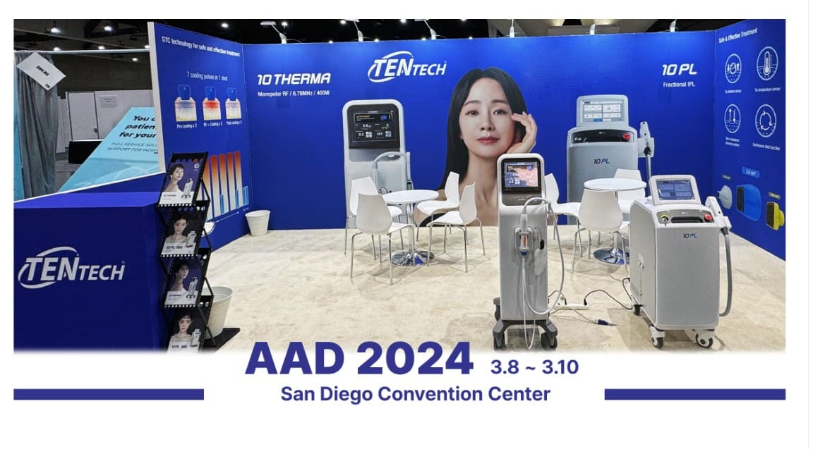 Ежегодное собрание AAD 2024 года — крупнейшее ежегодное собрание, посвященное дерматологии в США. Это ежегодное собрание организовано для обмена последними научными тенденциями в дерматологии и достижениями в области медицинского оборудования. В мероприятии приняли участие более 350 крупных компаний в области дерматологии, а мероприятие привлекло около 18 000 посетителей, в основном дерматологов. Компания Tentech Inc. представила монополярное радиочастотное (РЧ) устройство «10THERMA» и устройство фракционной IPL «10PL». Tentech Inc. получила разрешение FDA 510(k) на оба продукта. В частности, значительное внимание привлекла модель 10THERMA (максимальная мощность 400 Вт/6,78 МГц), впервые официально дебютировавшая в США. «10THEMA» — это устройство, которое может доставлять радиочастотную энергию к дерме, генерируя тепло за счет электрического сопротивления кожи. Монополярная радиочастотная обработка «10THERMA» использует монополярный электрод для эффективного проникновения тепла глубоко в слои кожи. «10THERMA» оснащен технологией согласования импеданса, которая помогает точно регулировать целевую энергию для отдельных людей. Кроме того, это лечение является неинвазивным, что приводит к отсутствию простоев и уменьшению боли. «10PL» — это устройство IPL (интенсивного импульсного света), которое значительно снижает риск ожогов за счет применения дробной концепции к существующей технологии IPL. Кроме того, размер насадки составляет 45 х 18 мм, что позволяет быстро обрабатывать большие площади. В 2021 году «10PL» получил одобрение FDA США. Представитель Tentech Inc. заявил: «Мы продемонстрировали в США радиочастотное устройство 10THERMA, получившее разрешение FDA 510(k)». Он добавил: «Tentech Inc. успешно завершила свою выставку, вызвав большой интерес со стороны дерматологов и дистрибьюторов с американских рынков, включая США, Канаду, Мексику, Чили и Бразилию». |