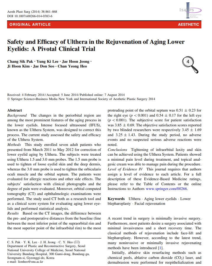 Safety and Efficacy of Ulthera in the Rejuvenation of Aging Lower Eyel